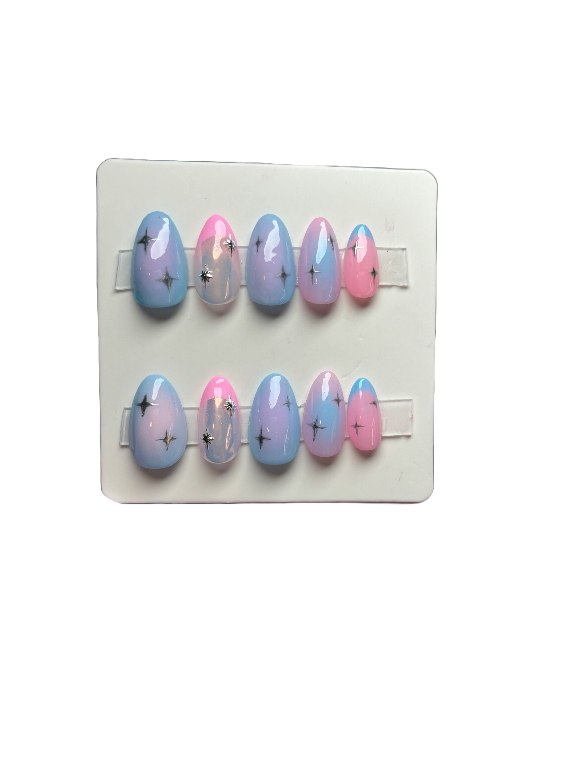 Short almond airbrushed press ons. These press ons are reusable when removed with care.